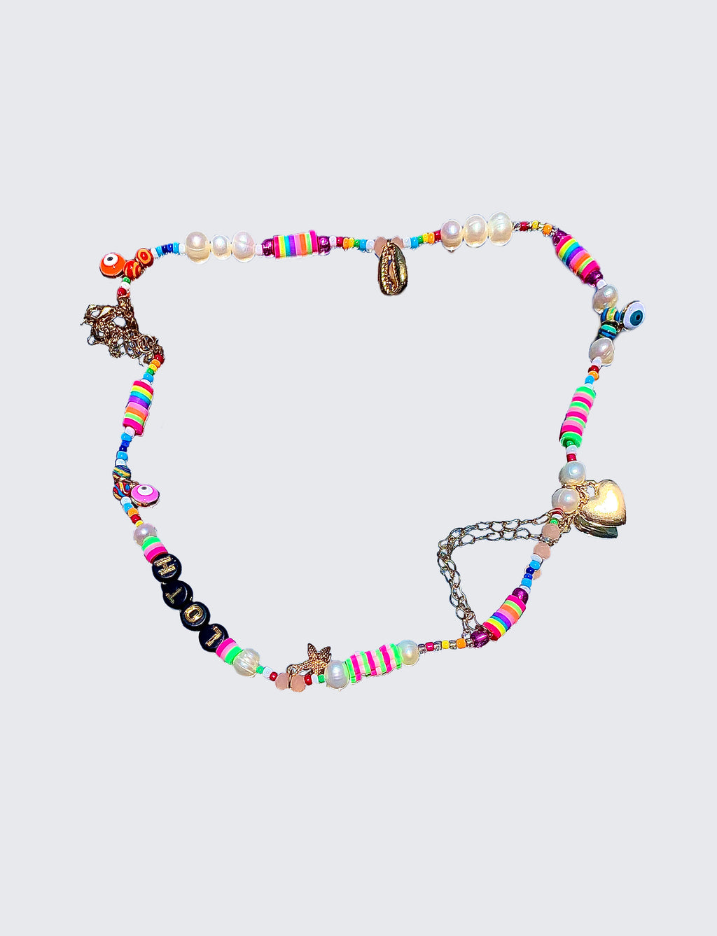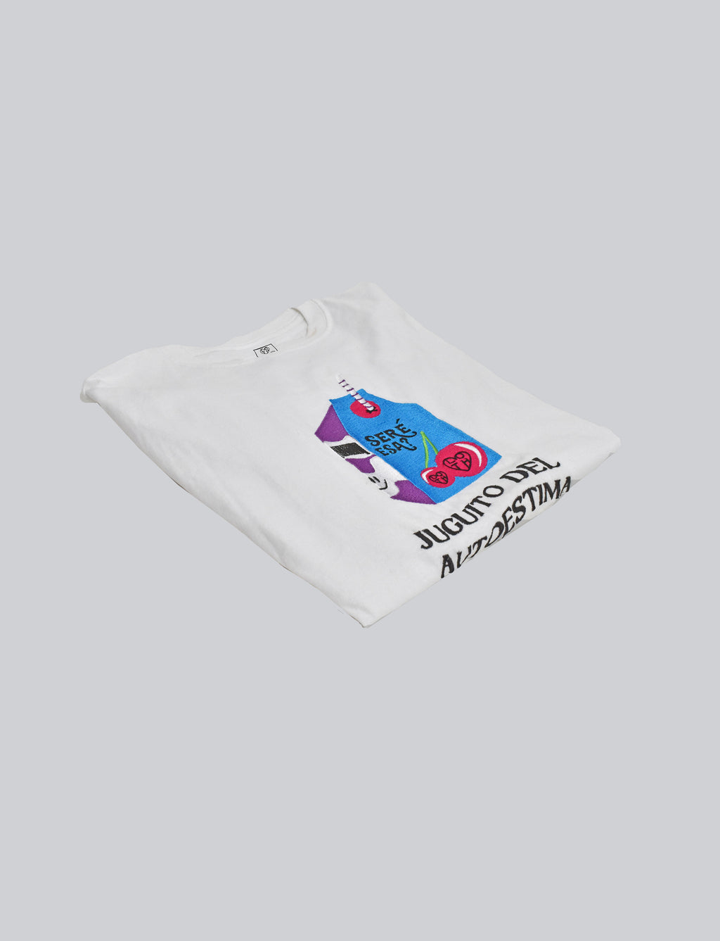 Playera unisex con manga corta. Lleva un bordado de texto multicolor a la altura del pecho y parte frontal, en parte trasera un parche de LOTH.