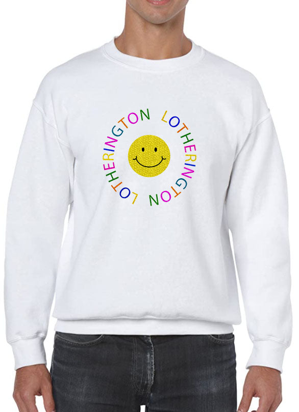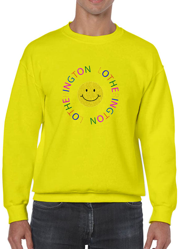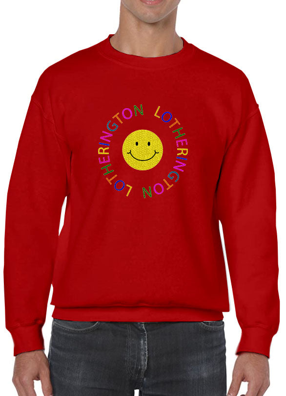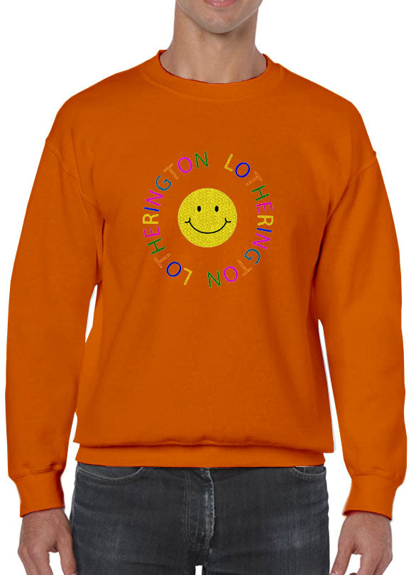 Sudadera unisex de forro polar con cuello redondo. Con diseño de SMILEY FACE bordado a la altura del pecho.